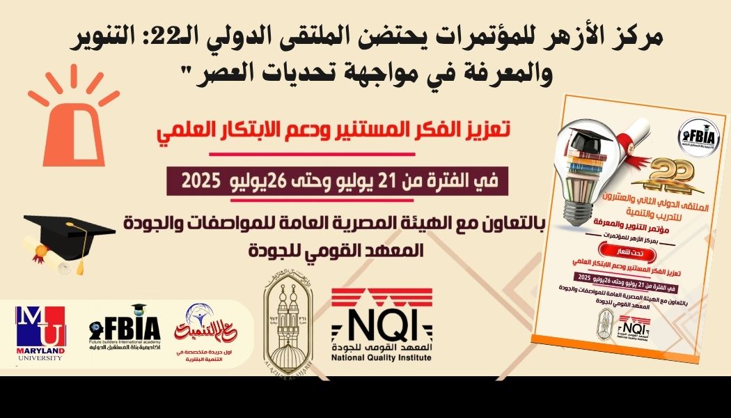 تستعد أكاديمية بناة المستقبل الدولية لإطلاق فعاليات الملتقى الدولي الثاني والعشرين للتدريب والتنمية، والمقرر انعقاده خلال الفترة من 21 إلى 26 يوليو 2025، تحت شعار: “مؤتمر التنوير والمعرفة: تعزيز الفكر المستنير ودعم الابتكار العلمي”، وذلك بمركز مؤتمرات الأزهر الشريف، وبالتعاون …